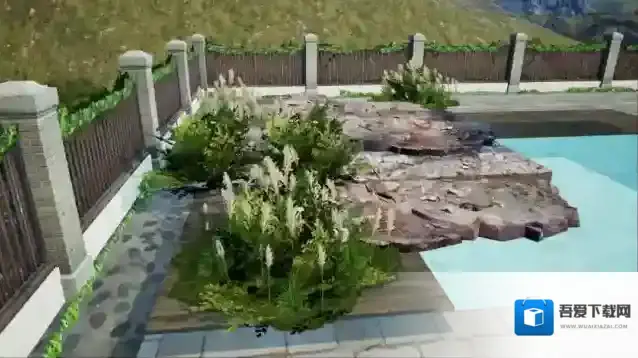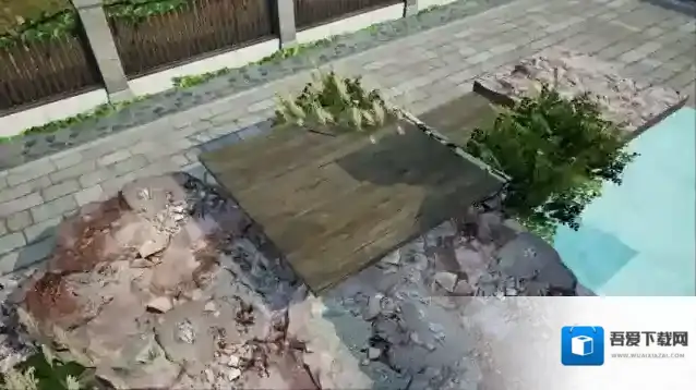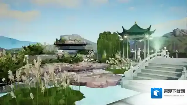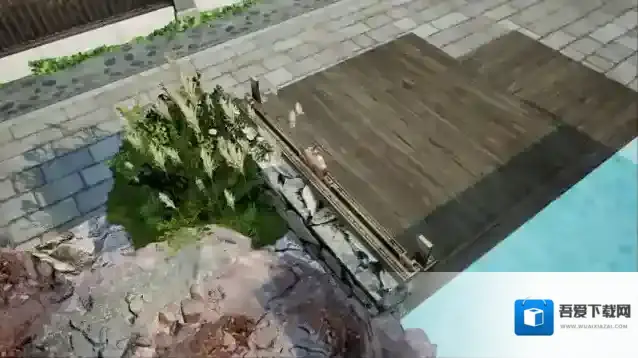 在原有地面的基础上放置石砌矮墙和水平滑轨或者小圆墙和水平滑轨利用“悬空地板”特性把普通地板悬空放置接着在厚石地板放置雕像底座再依次堆放河边蒲苇、路边野草将厚石地板覆盖普通地板之上将上述两种建筑技巧自由发挥围绕水面叠放出想要的效果