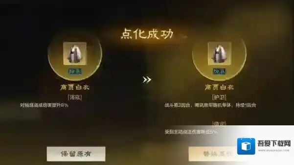 这里建议马匹的繁育最好先合出单特技或特效紫马,后与无特技或特效的橙马合成,合出单特技或特效的橙马,如果特技为游龙等好用的特技则建议直接留用(建议前期橙马较少时可先给队伍过渡使用),中后期马匹较多后,把两个单特技或特效橙马做合成,合出好用的特技或特技+特效双词条橙马后结束。合成有风险请谨慎使用,后期建议可适当规划繁育操作,祝各位主公都能繁育出带有专属特效的绝世名驹(红马)。⑥装备开启淬炼和点化功能淬炼可改变装备的属性值,但无法改变其属性类型、特技和特效,淬炼需要花费的铁英砂前期主要是分解紫色装备获得。