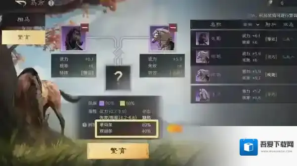 两匹有特技、特效的单词条的马有40%概率合出双词条。