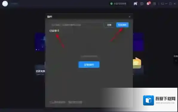 2、然后就进入到了添加插件的设置页面了,可以看到插件框里已安装的数量是零,这时我们选择右侧的“获取插件”。