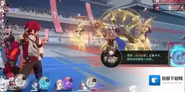 5、当我们右上角的战斗条满格后我们可以使用剧情角色进行输出,如果战斗条没有满我们就选择破旁边小怪的弱点。