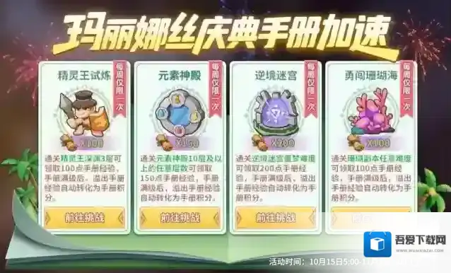 10月15日更新后~11月3日 5:00期间,通关副本目标任务,即可领取手册经验,助力加速升级更畅快!