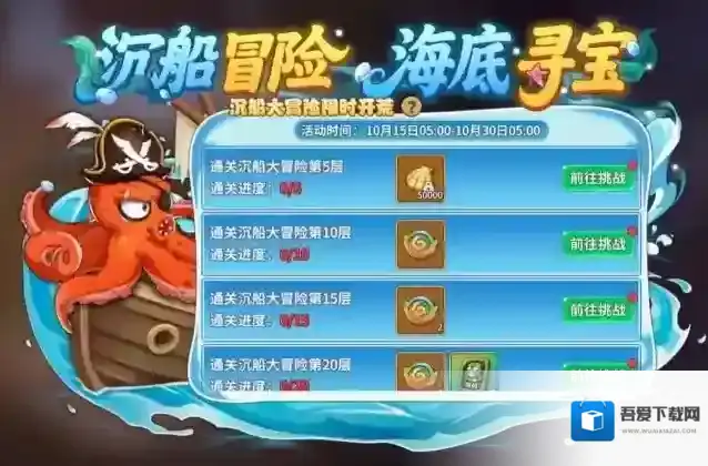 通关沉船大冒险目标层级,即可领取对应奖励。