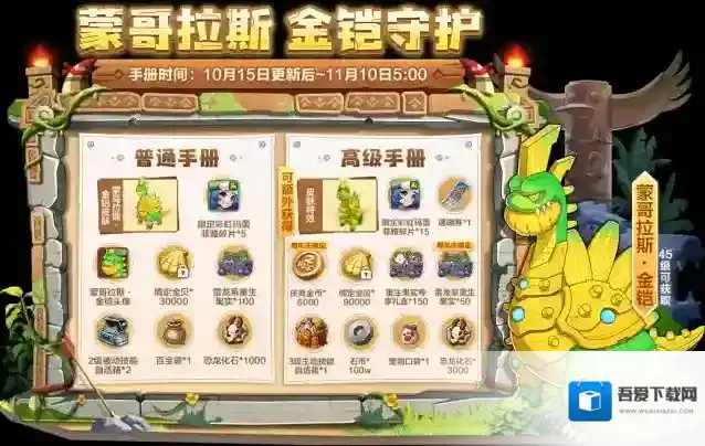 《石器时代:觉醒》是周年手册的加速福利!45级领取金铠皮肤,通关副本任务还能获得手册经验!活动时间持续到11月10日,记得每天完成任务领取奖励!还不知道的小伙伴们跟着小编一起往下看吧