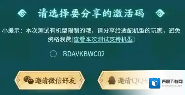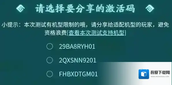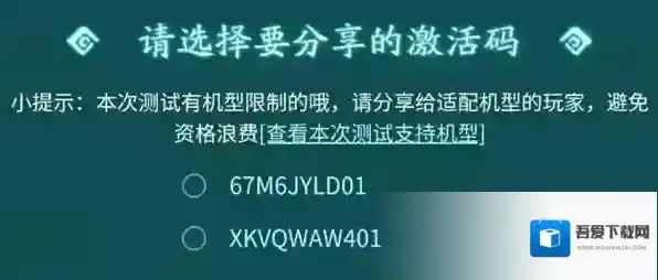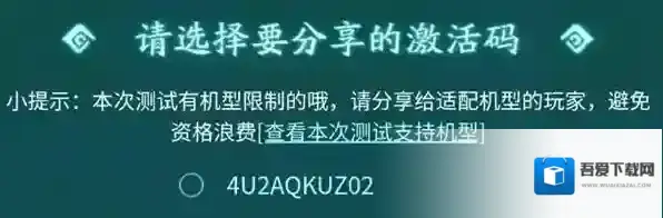 玩家对应自己的机型,以免领取了激活码而不能够用。