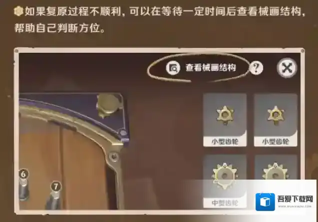 5、如果复原过程不顺利,那么旅行者们可以在等待一定时间过后,在右上角能够去[查看械画结构],帮助自己判断如何操作。