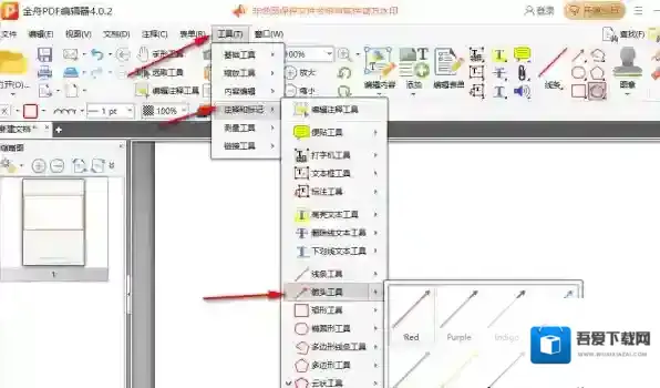 5、小编在此提醒大家,如果你的软件工具栏中没有线条工具,可以直接在上面的界面中找到“工具”按钮,然后点击“注释和标记”,也可以进行图形的绘制工作。