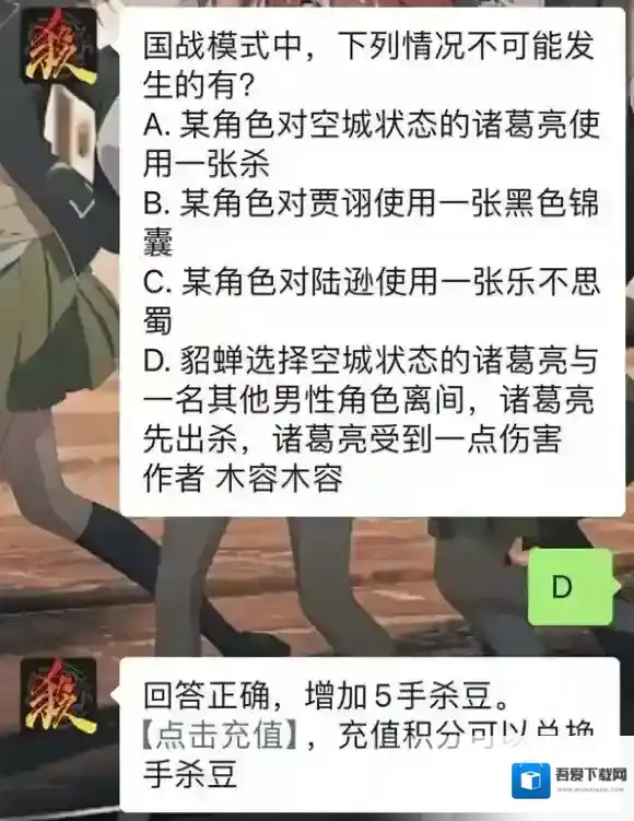 国战模式中,下列情况不可能发生的有 三国杀9月6日每日问答答案