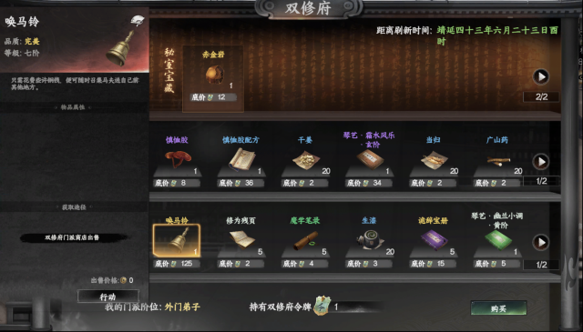 也可以在贡献堂主点击经营,消耗铜钱兑换令牌