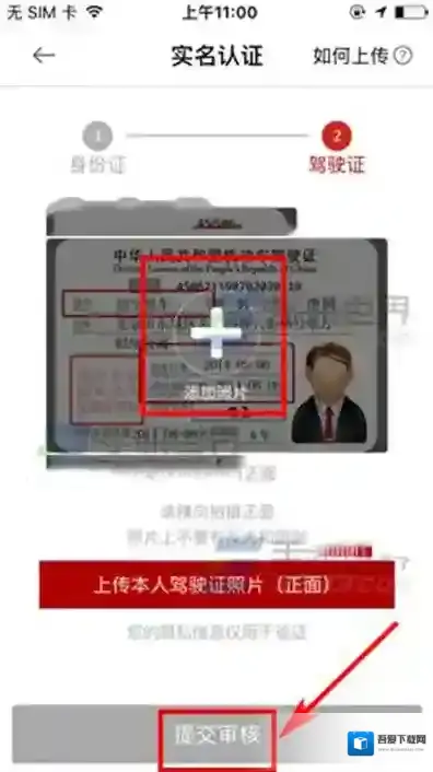 2、然后上传本人身份证照片,点击下一步,最后在上传了驾驶证正面照后点击提交审核即可。(如下图)