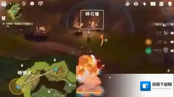 4、按照地图指引朝着西南方向使用岩龙技能撞碎石墙。