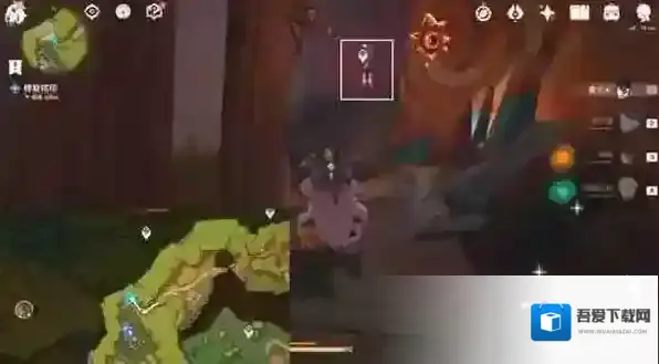 12、朝着地图的北方向击败丘丘人,从缝隙中进入和机关进行交互。