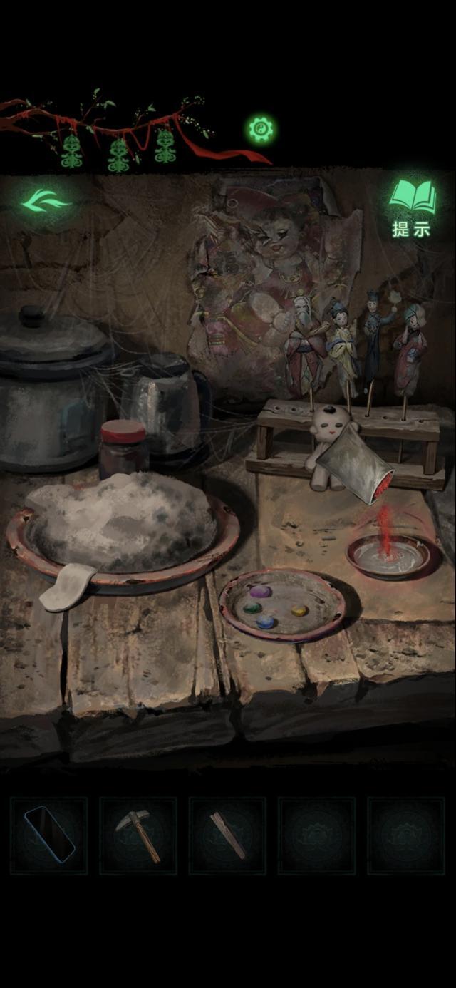 进门,点击桌子上的泥巴捏成小人,然后用火柴点灶,根据小卖店里通过手机看到的数1321拉风箱把火烧旺