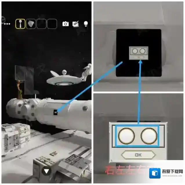 10.点击舱门上的密码锁,根据画上的线索,调整密码锁,打开舱门
