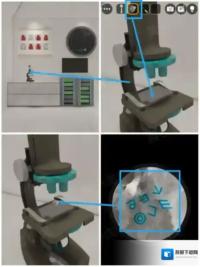 14.点击显微镜,放上石头观察,获得符号线索