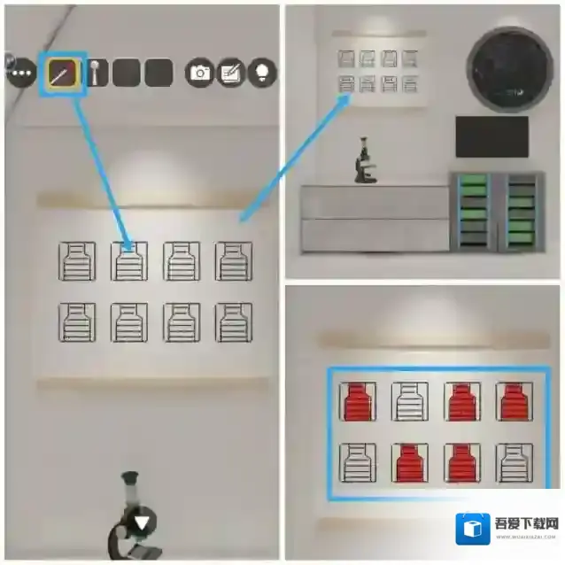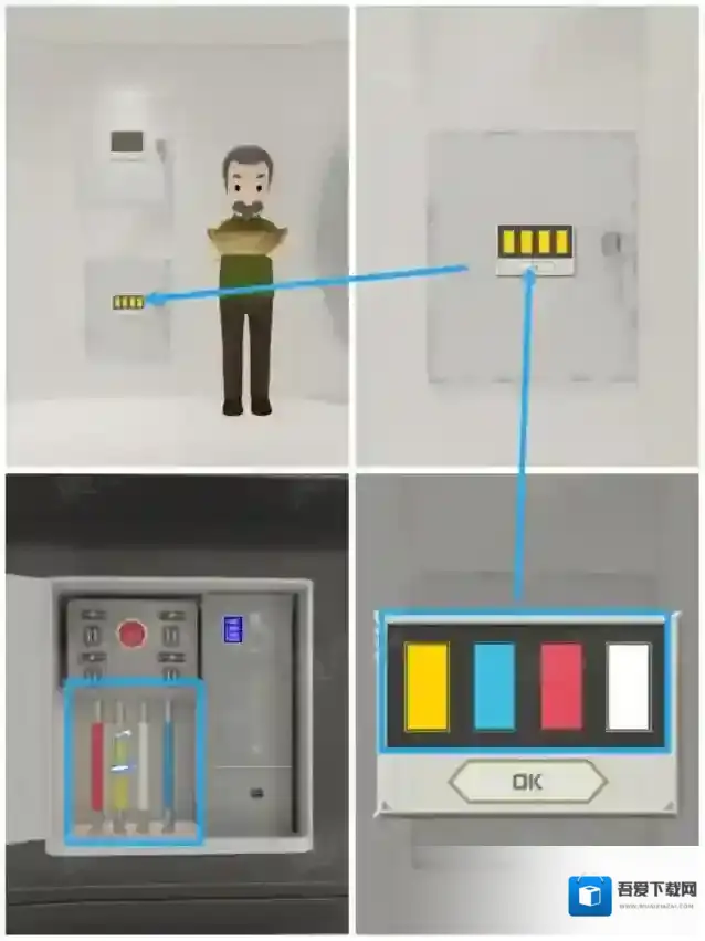 6.点击墙上的下层柜子上的密码锁,根据[控制室]电极管发电顺序,调整密码锁
