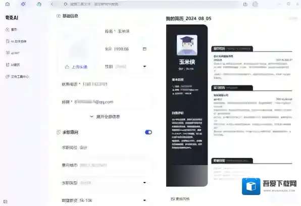 哪一个AI软件可以生成个人简历,虽然今年的毕业季已经过去了,但是还是会有很多小伙伴正在找工作的路上,而找工作的话,简历是必备的。而目前AI工具那么多,有没有可以一键智能快速生成简历的工具呢,有的话是哪一款呢,具体的生成步骤又是什么呢,来看看吾爱下载网小编的调查结果吧。
