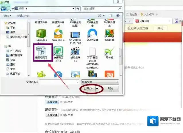 7、添加歌词文件,没有的话可以不用添加,歌词可以用酷狗音乐制作。