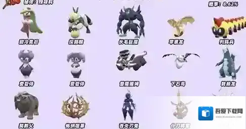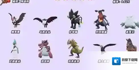 伊布,黑鲁加,喷火陀,罗托姆,索罗亚克,智挥猩,丰蜜龙,颤弦蝾螈,怖思壶,啪嚓海胆,奥利瓦,米立龙