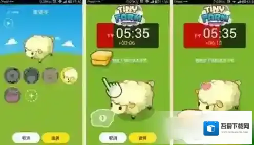 以羊为例,选择羊,然后点击屏幕左上方的开始按钮,就会进入闹钟响铃的程序,只有将屏幕中随机出现的草,放入羊的口中闹钟才会停止,其它小动物停止方式也各不相同。