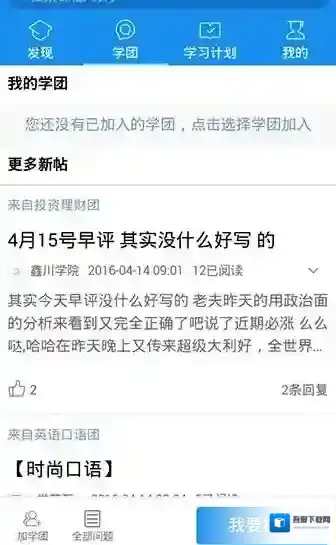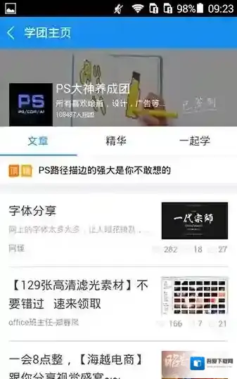 4、然后点击该学团就能进入到该课程的学团主页,在里面我们可以签到,还可以看到一些精品文章以及和别人一起学课程。