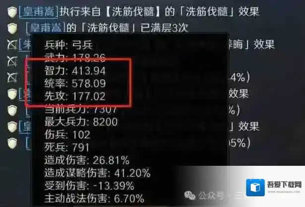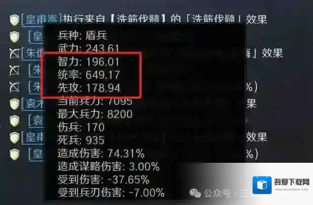 重要战法:百战不殆,可以帮皇甫嵩快速叠统率,基本上4-5回合可以打出爆发伤害。