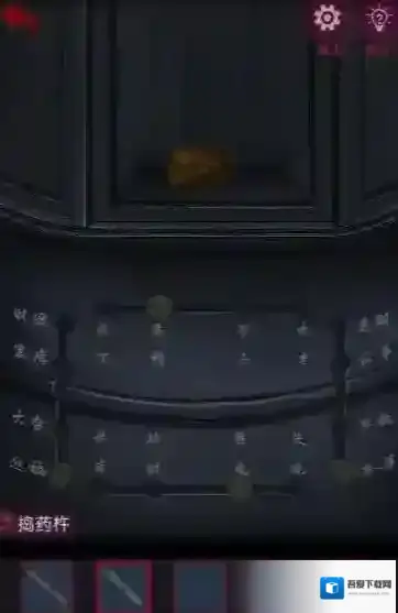 2、打开门后,点击两边灯笼,会提示石柱灯上有凹槽可以放东西。点财神殿旁边的草地获得捣药杵,密码锁答案是大门上的灯笼提示玄之又玄众妙之门,输入后打开财神殿。