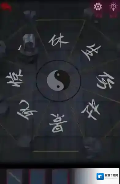 1、从对联里找到线索后解决门上的八卦机关,点击乌龟背上八卦对应门上线索,先兑和离,再按乾和震。