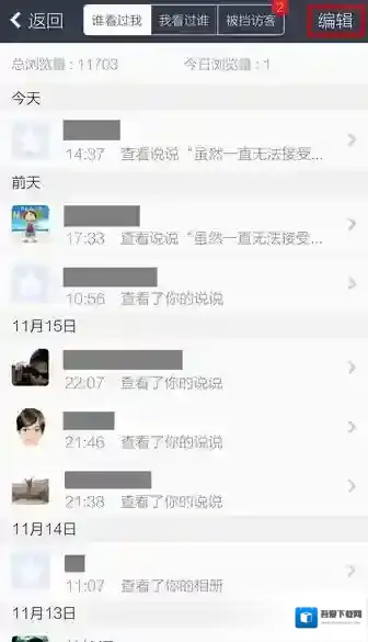 4.这里便是空间访问记录,点击右上角的编辑