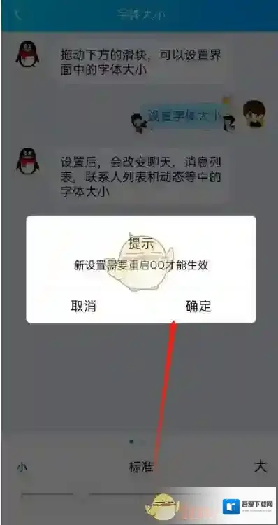6、点击弹窗的确定,重启手机QQ就可以使用自己设置的字体大小啦