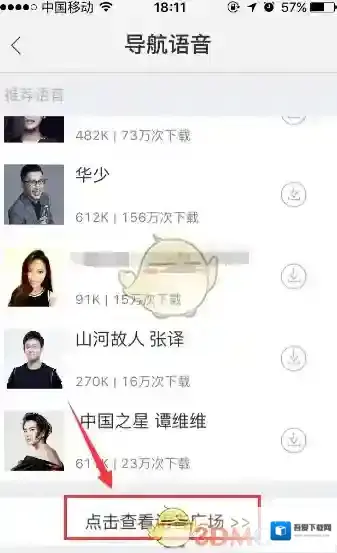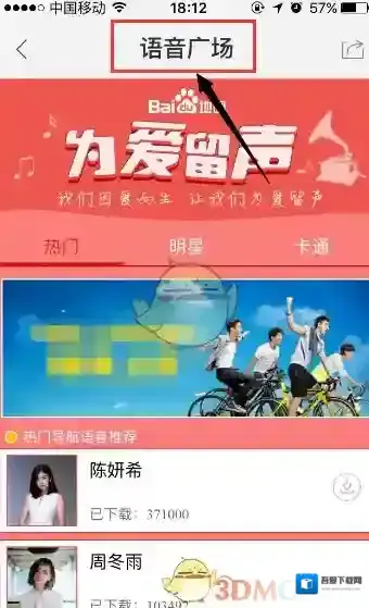 7、在“语音广场”页面,我们可以通过其中的热门、明星等按键进行查找,找到之后下载他的语音包即可进行替换了。