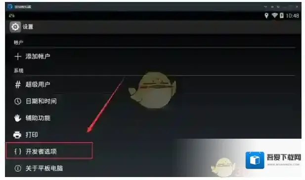 4、之后返回到设置界面,你会发现多出了一个“开发者选项”的功能,在该功能中可以开启“USB调试”模式。