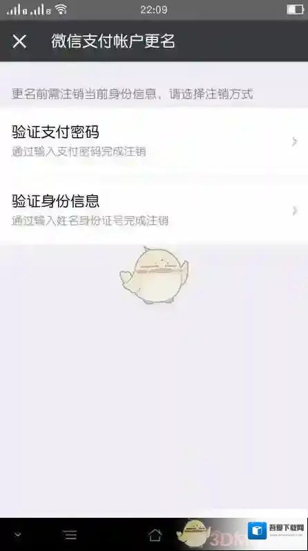 5、在微信支付帐户更名中选择通过(输入支付密码)和(输入姓名身份证号)完成注销。