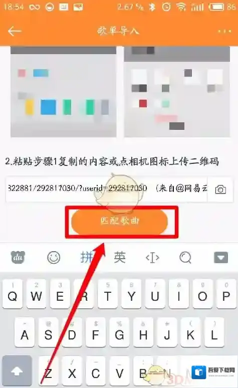 6、等待“导入外部歌单”界面加载出来后,将我们的粘贴到我们底部的输入框中,
