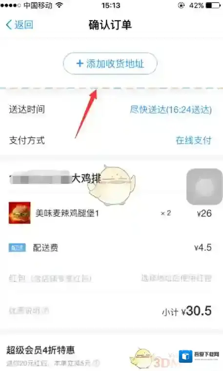 6、选择完商品后点击去结算,然后添加收货地址,大约到达时间都可以看到,点击“去支付“,会直接使用支付宝进行支付,支付完成后,订单就算下成功了,如图所示。