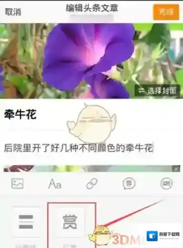 8.确定以后会回到文章编辑页面,点击右上角的“完成”按钮,如图所示: