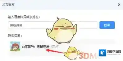 然后,在弹出的对话框中输入对方的百度账号,点击后面的搜索按钮。