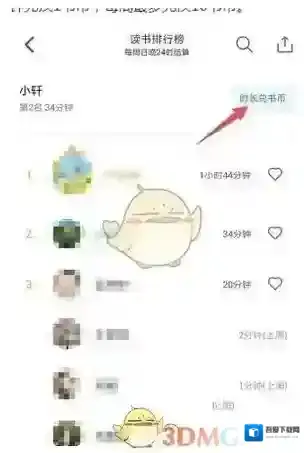 6.还可以点击读书排行,查看读书时长,点击右上角的时长兑书币,进行兑换书币,三十分钟兑换1书币,每周最多兑换10书币。