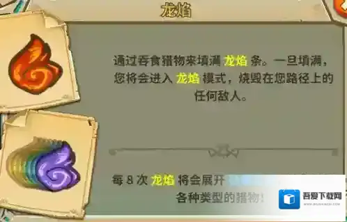 通过吞噬猎物来填满龙焰条,一旦填满,你将会进入龙焰模式,烧毁你在路径上的任何敌人。