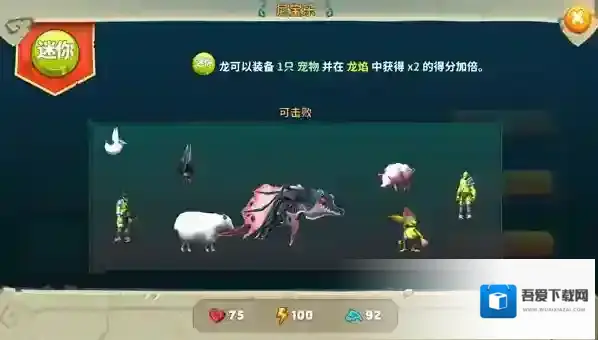 迷你龙可以装备1只宠物,并在龙焰中获得*2的得分加倍。