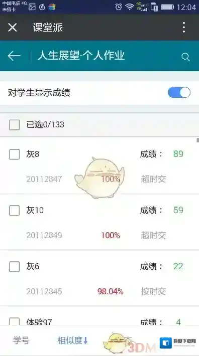2、选择要批改的学生,点击即可进入此同学的详情页