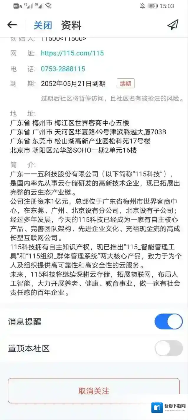 6、在社区的后台中,点击下方的“取消关注”即可。