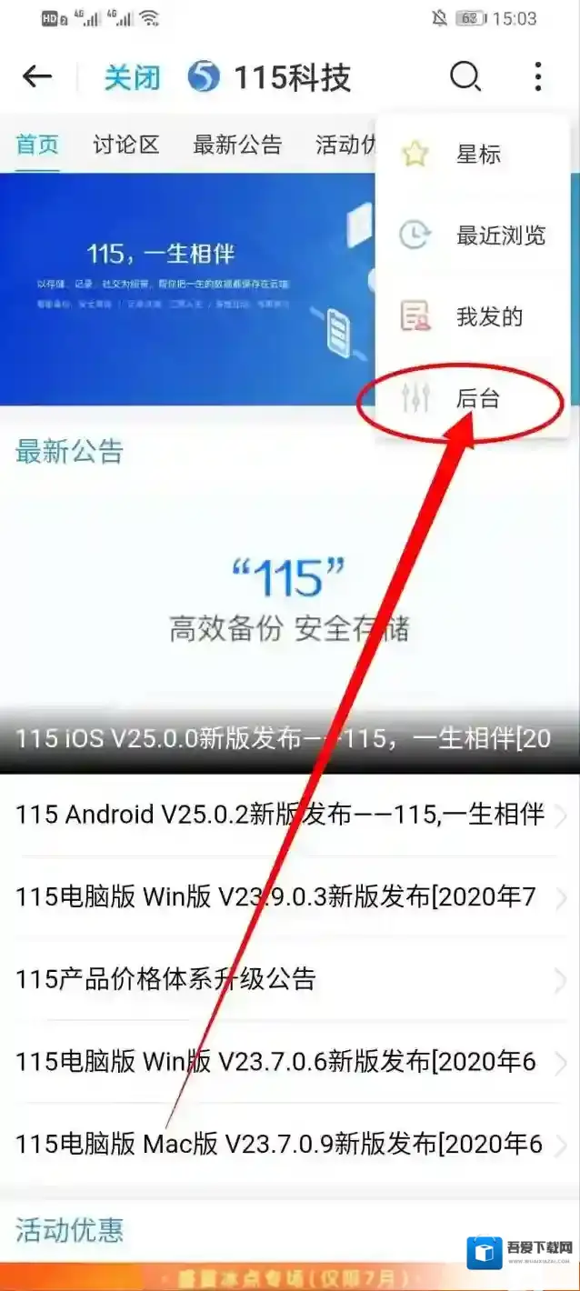 5、在社区的界面中,点击右上角的“省略号”,在弹出的选项中点击“后台”。