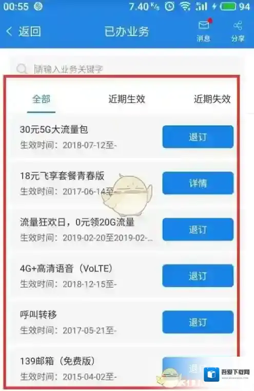 5、进入更多已办业务页面后,可以查看全部业务,可以进行退订操作,如下图