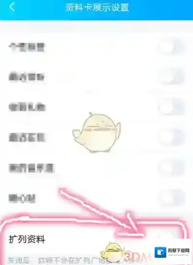 6、最后我们将扩列资料开启,这样你的扩列资料就会重新显示了。