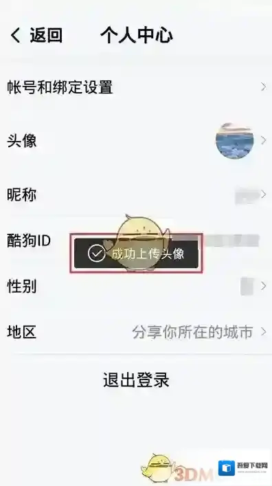 5、最后他提示“成功上传头像”后,就可以在头像处看到自己的新头像啦!