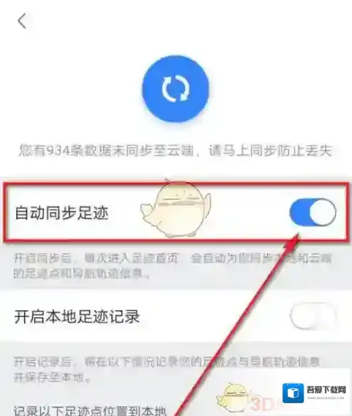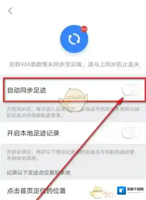 6、将“自动同步足迹”旁的滑块点亮即可打开。