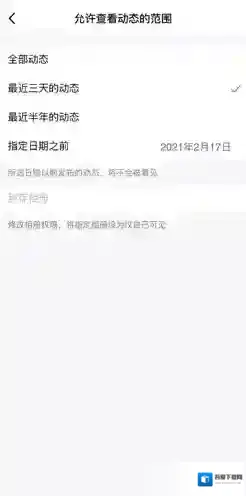 5、最后点击其中的“允许查看动态的范围”按钮,进入到查看范围后将全部动态修改为最近三天的动态即可。