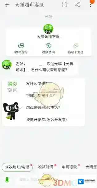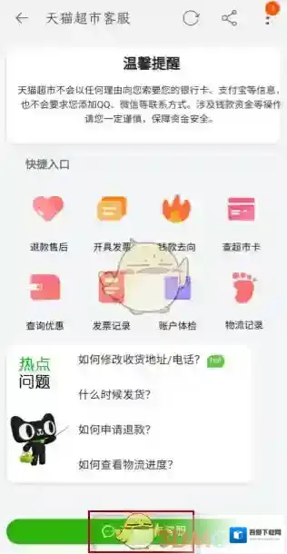 4、进入天猫超市客服界面,点击“天猫超市客服”;