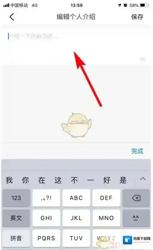 4、在编辑个人介绍页面中,输入选择想要设置的介绍,点击右上角的“保存”即可。